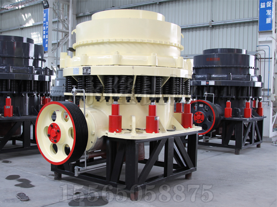 工作時,電動機(jī)的旋轉(zhuǎn)通過皮帶輪或聯(lián)軸器、圓錐破碎機(jī)傳動軸和圓錐破碎機(jī)圓錐部在偏心套的迫動下繞一周固定點(diǎn)作旋擺運(yùn)動。從而使破碎圓錐的破碎壁時而靠近又時而離開固裝在調(diào)整套上的軋臼壁表面,使礦石在破碎腔內(nèi)不斷受到?jīng)_擊,擠壓和彎曲作用而實(shí)現(xiàn)礦石的破碎。電動機(jī)通過傘齒輪驅(qū)動偏心套轉(zhuǎn)動,使破碎錐作旋擺運(yùn)動。破碎錐時而靠近又時而離開固定錐,完成破碎和排料。