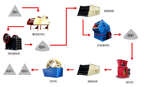 在砂石料生產(chǎn)線上,所需的設(shè)備主要有振動(dòng)給料機(jī)、鄂式破碎機(jī)、反擊式破碎機(jī)(或圓錐破碎機(jī))、立式板錘式制砂機(jī)、輸送帶、振動(dòng)篩以及除塵設(shè)備。可根據(jù)不同的物料大小、產(chǎn)量、成品大小增減設(shè)備,也有大、中、小型的設(shè)備滿足客戶不同的生產(chǎn)需求。不同的生產(chǎn)線配置價(jià)格也差別很大。
